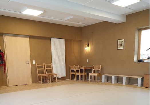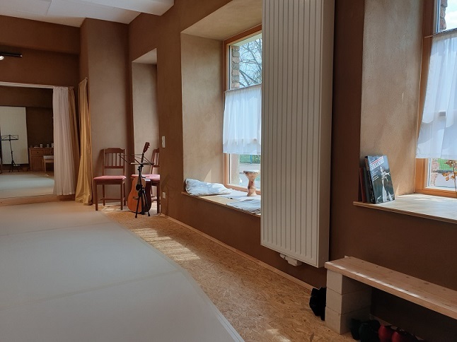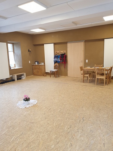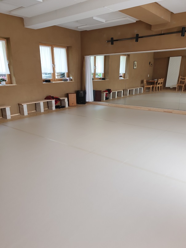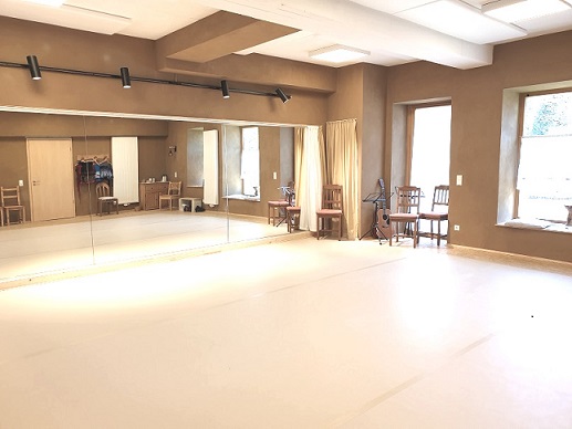 Der 54 m² große Kulturraum ist einseitig mit einer Spiegelwand ausgestattet. Mit Schwingboden und Tanzteppich ist er ideal für Unterricht und Begegnungen im Tanz. Für Veranstaltungen anderer Art lassen sich Spiegel und Boden bedecken und gegebenenfalls Stühle aufstellen. Der Raum und das benachbarte Bad sind barrierefrei zugänglich (wenngleich der Zugang für Rollstuhlfahrer zurzeit durch Wiederaufbauarbeiten des flutgeschädigten Nachbarhauses etwas erschwert ist). Der Garten (mit Feuerstelle) lädt zur Entspannung ein. Kaffeemaschine, Teekocher, Getränke, Geschirr, Besteck im Raum vorhanden.